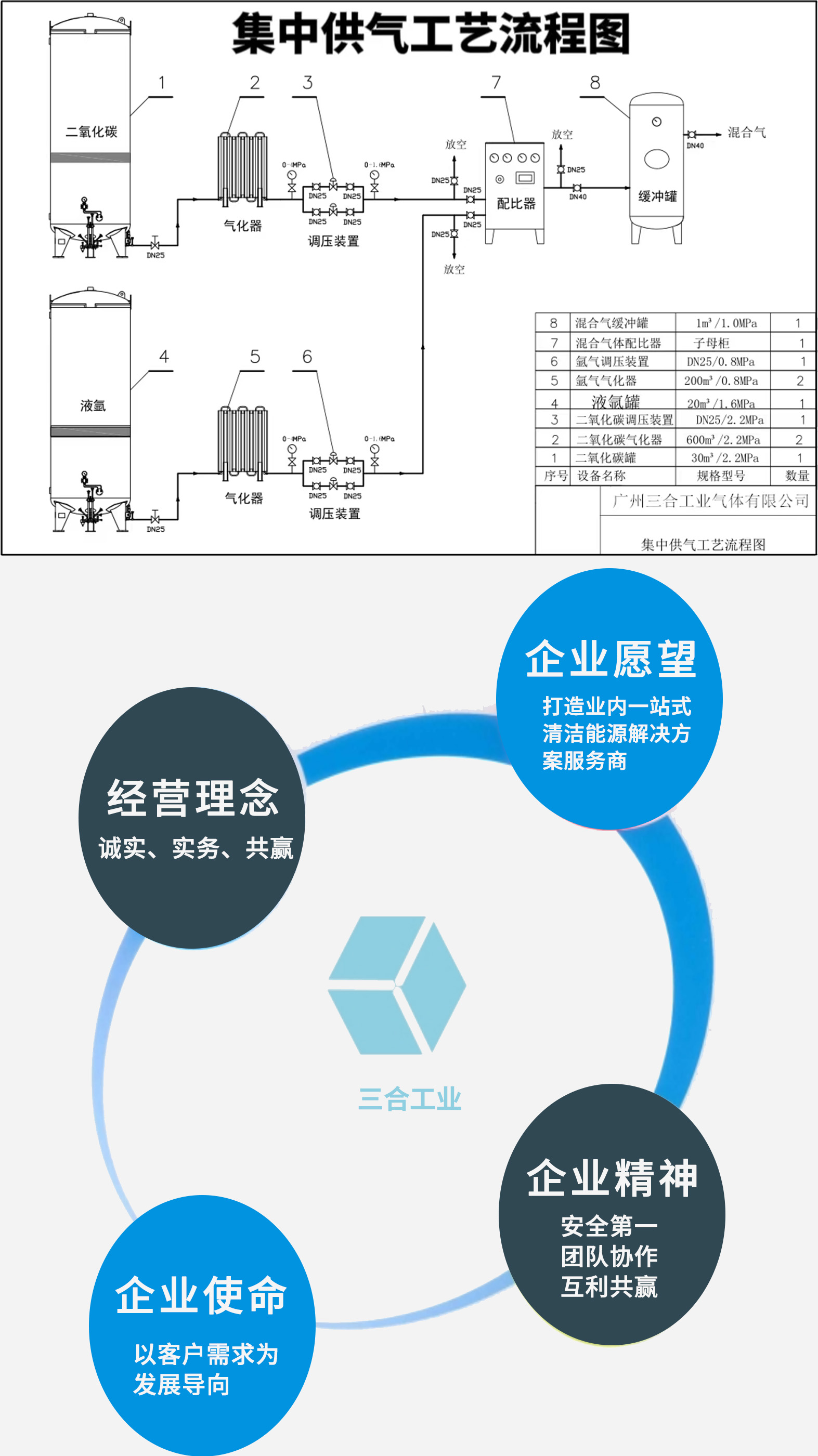公司秉承誠信、務實、共贏的經營理念,堅持以客戶需求為導向,以客戶效益最大化為追求,將公司打造成業內一流的工業氣體一站式供應商